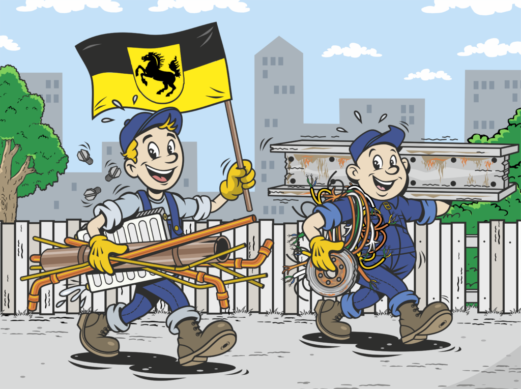 Die Schrottjungs sind in ganz Stuttgart unterwegs – von Stuttgart-Mitte über Bad Cannstatt bis nach Vaihingen, Feuerbach, Möhringen, Degerloch oder Zuffenhausen. Wir holen Schrott dort ab, wo er anfällt: in Wohnungen, Kellern, Garagen, Betrieben oder auf Baustellen.